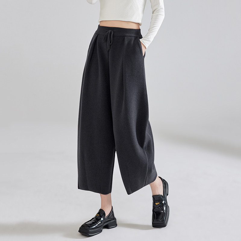 灯笼裤 外穿高腰加厚哈伦九分裤 女秋冬宽松阔腿弯刀裤 双面绒香蕉裤