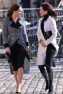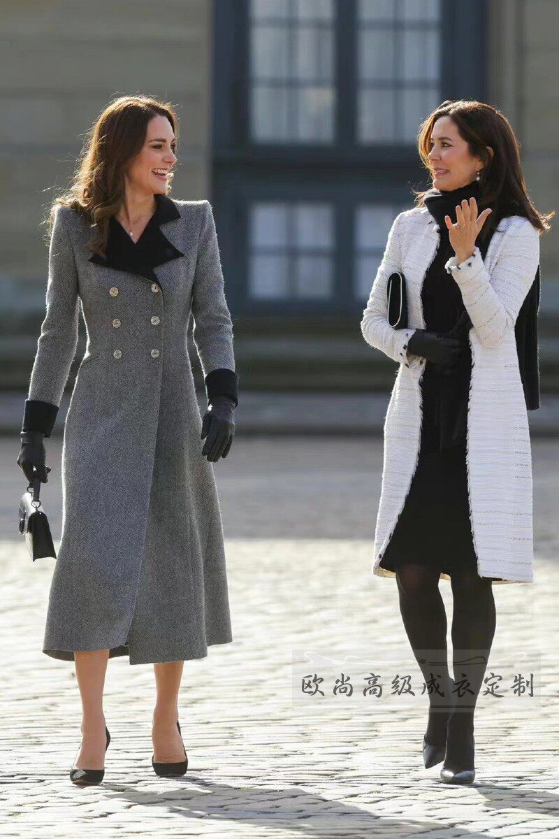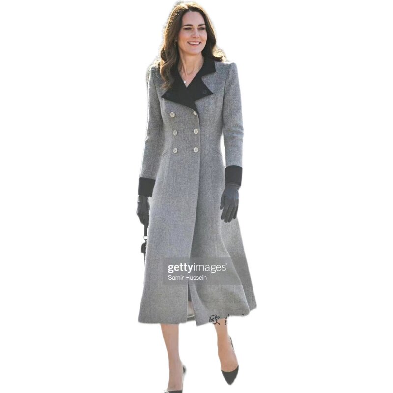 高级定制凯特王妃同款 通勤OL 灰色双排扣羊绒羊毛大衣外套拼色修身
