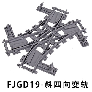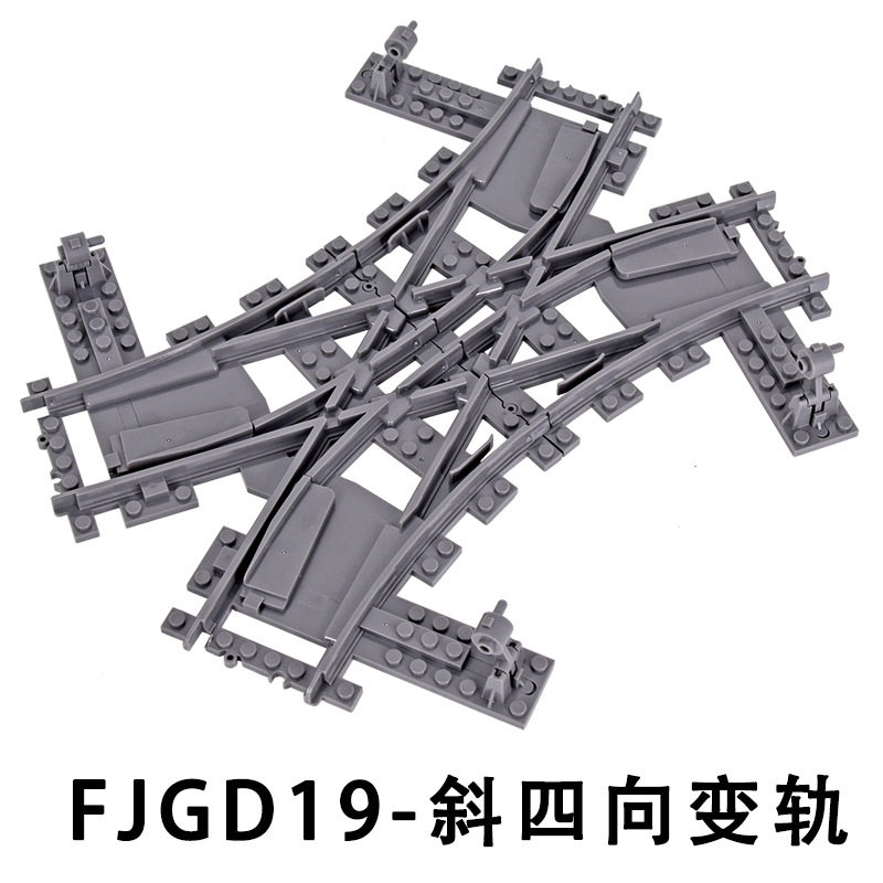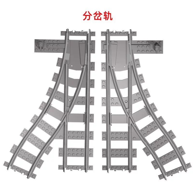 火车轨道小颗粒积木人行天桥分叉直轨弯轨候车亭moc零件配件98215