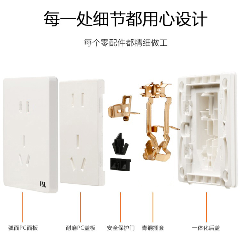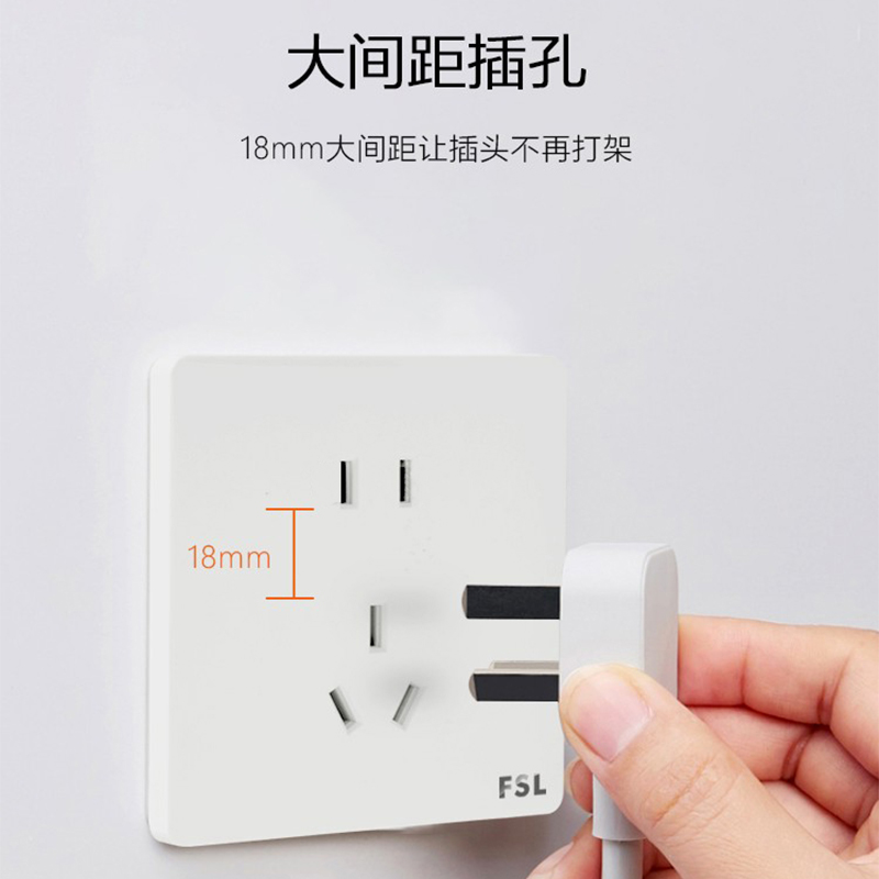 佛山照明开关插座面板一开五孔带开关二三插家用暗装 86型F31白色