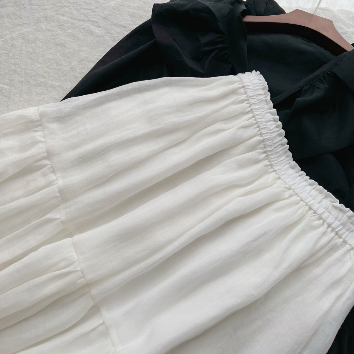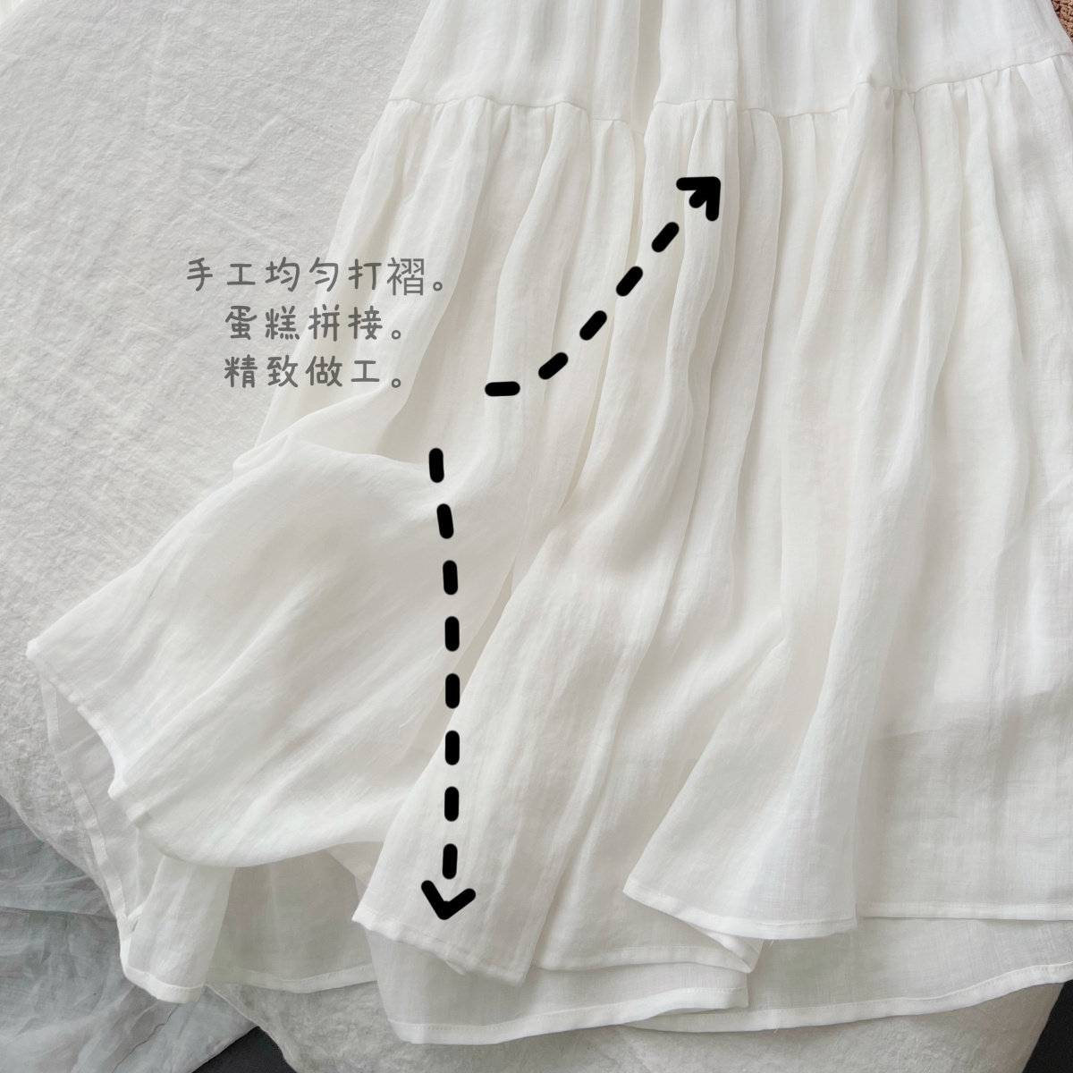 奶油云朵 2022夏 独家自制精纺细支天然苎麻A字蛋糕半身裙中长款