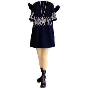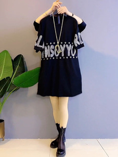 修身 针织连衣裙女秋冬新款 显瘦打底包臀短裙子 胖妹妹黑色长袖 大码
