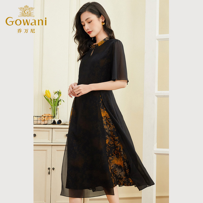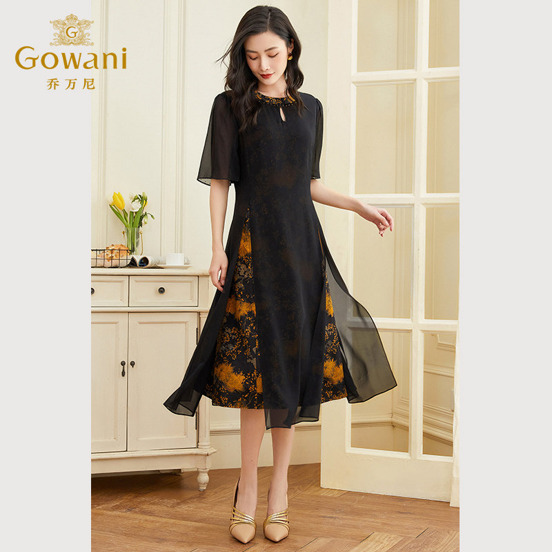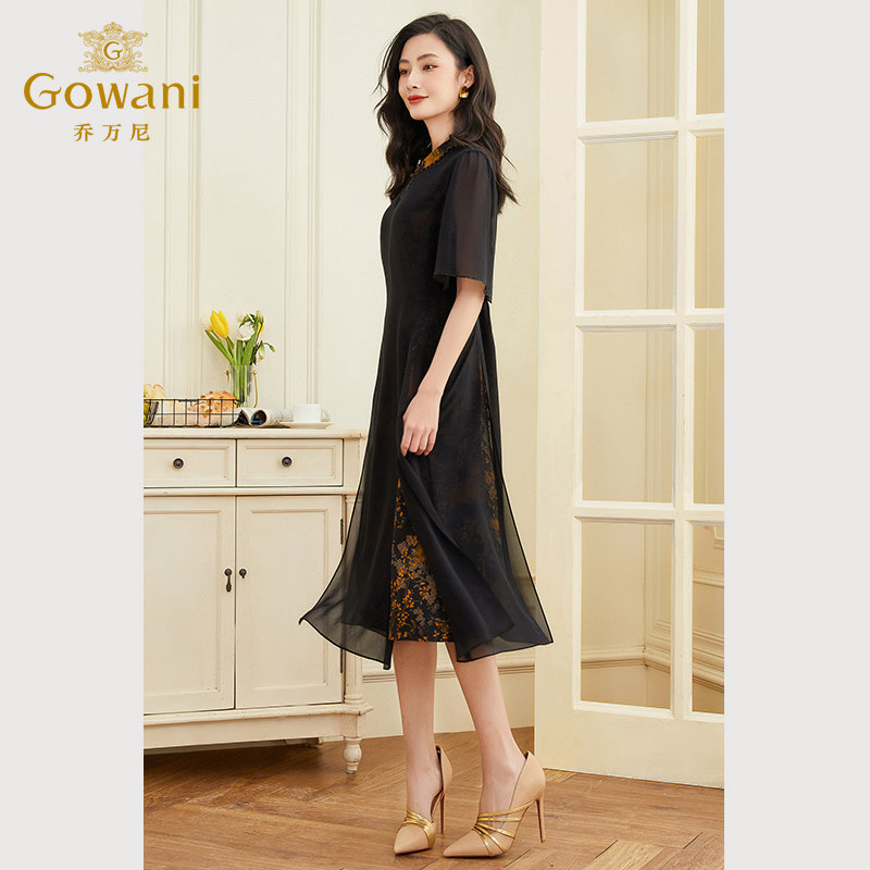 丝绒连衣裙女花卉印花花苞裙披肩套装 新中式 花舌秘境 OfAkiva