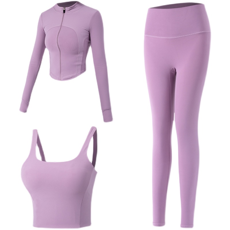 奔跑吧卡卡紫色设计感中长款 显瘦瑜伽服上衣运动健身 开叉T恤长袖