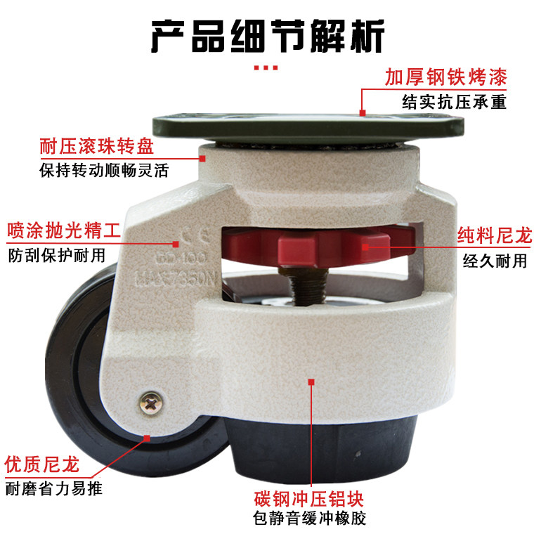 水平调节轮福马轮万向轮承重脚轮40F60F80F100F支撑重型150丝杆轮