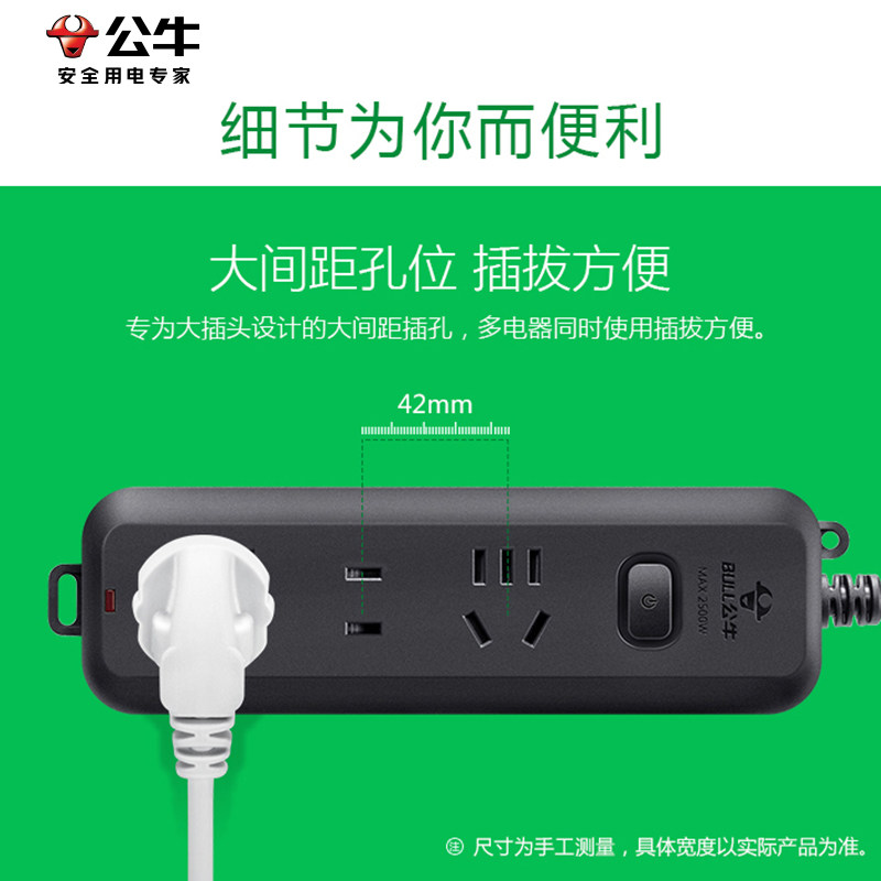 公牛插座插排排插接线板插线板正品 带线家用多孔延长米线学生宿舍