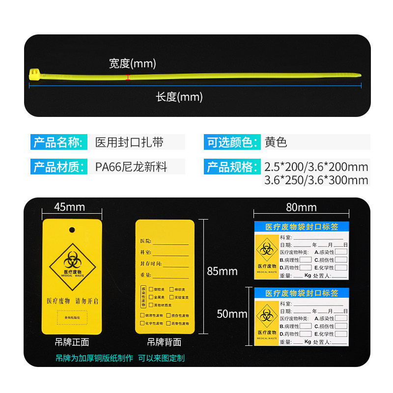 医疗废物封口扎带尼龙黄色医用捆扎带医废垃圾袋捆绑带塑料扎线带