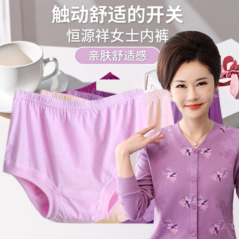 衩高腰宽松 头全棉短裤 恒源祥中老年人内裤 女士平角妈妈纯棉三角裤