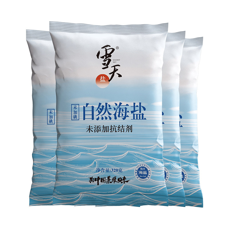 雪天未加碘自然海盐无碘食用盐无抗结剂家用大颗粒食盐海盐320g