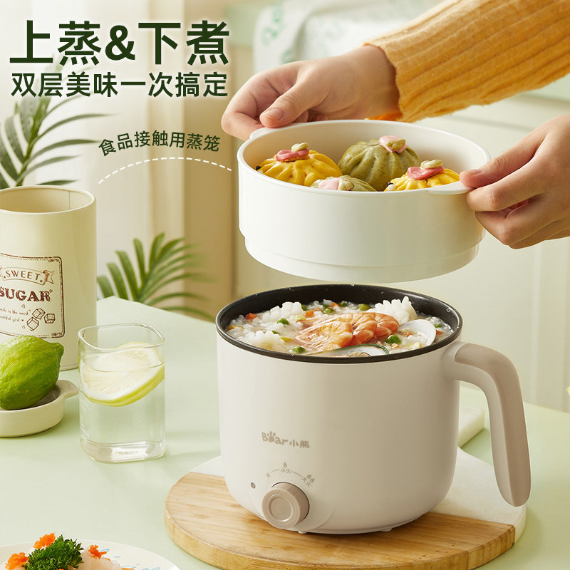 小熊电煮锅家用宿舍学生锅一人食小型火锅一体锅多功能泡面小电锅