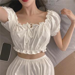 两件套装 夏装 睡衣睡裤 日系软妹可爱蕾丝吊带背心短裤 家居服潮 女装