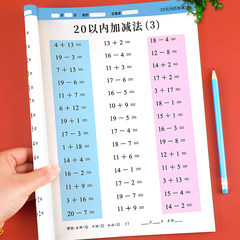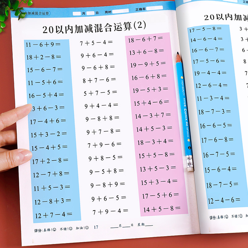 算术本100题每日一练 幼儿园大班数学口算练习册一年级 20以内加减法天天练幼小衔接口算题卡二十以内 进位退位加减法老师推荐