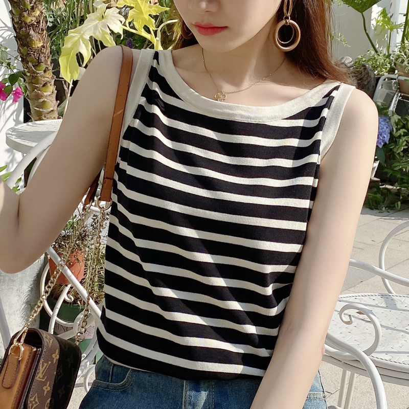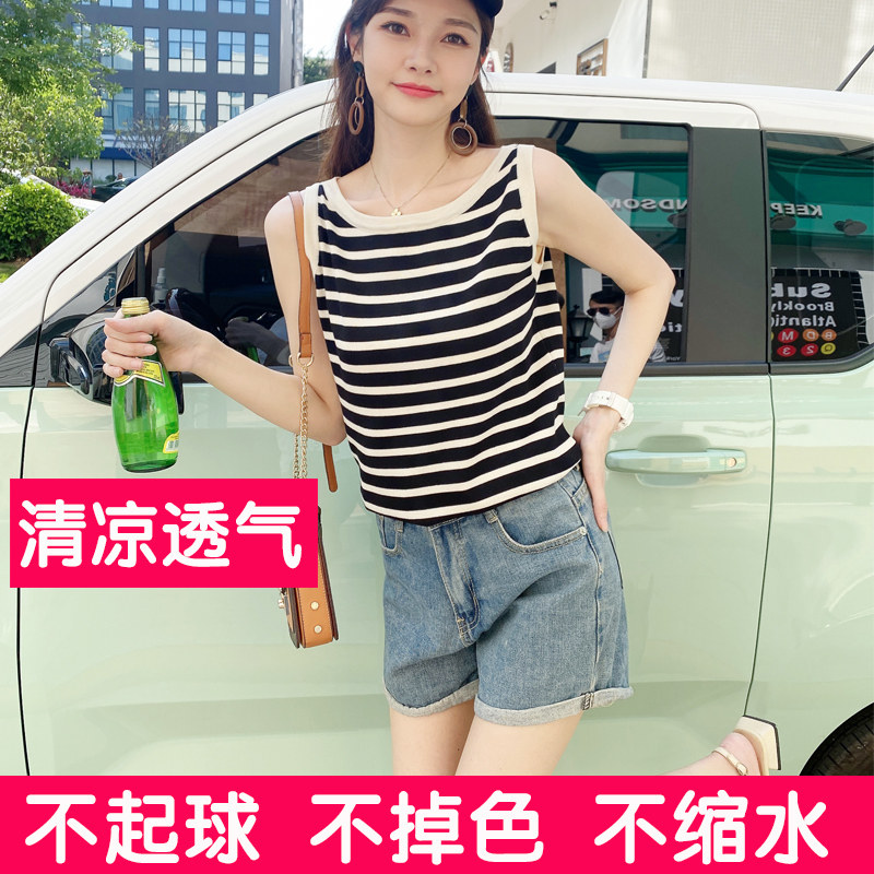 打底衫 纯色百搭外穿无袖 新款 白色罗纹棉直筒吊带背心女内搭春夏季