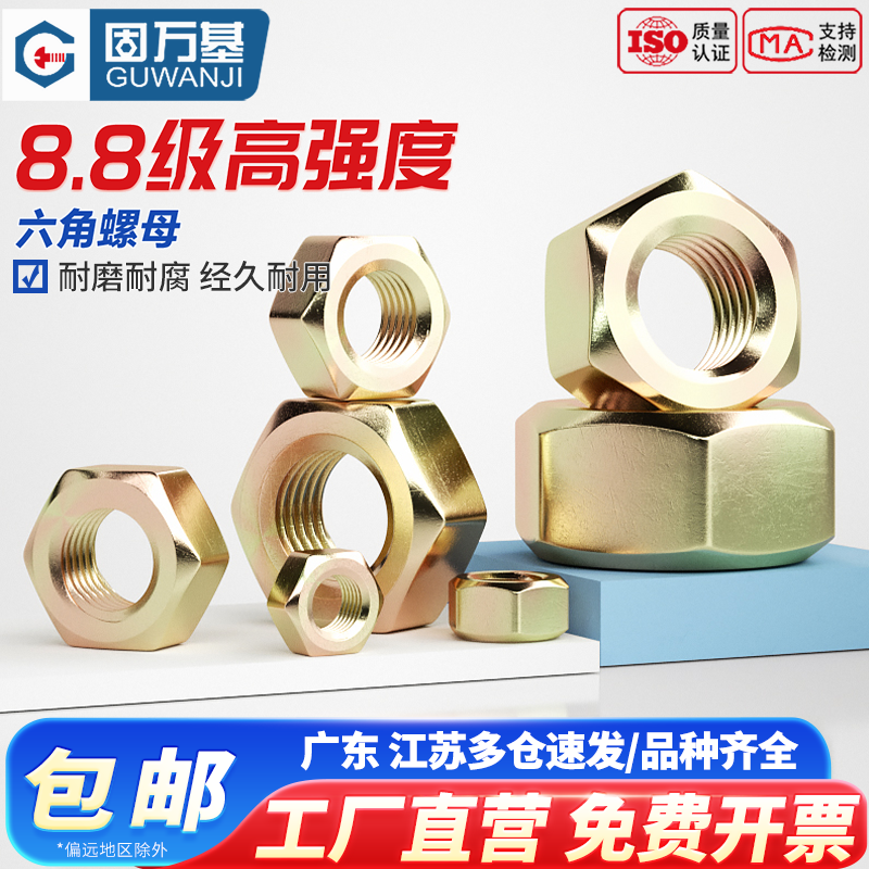 4.8级镀锌六角螺母8.8级六面大螺帽M3M4M5M6M8M10M12M14M16M18M20
