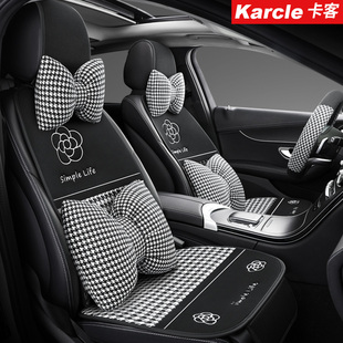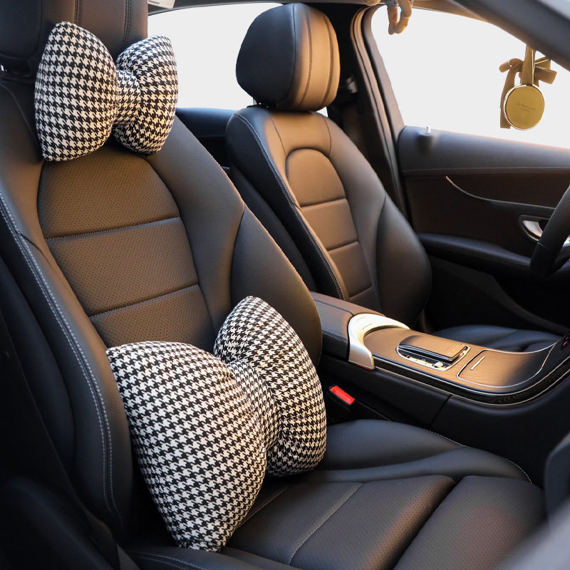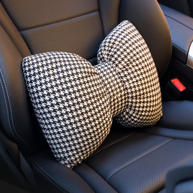千鸟格汽车头枕女座椅护颈枕可爱蝴蝶结个性 创意车载枕头腰靠一对