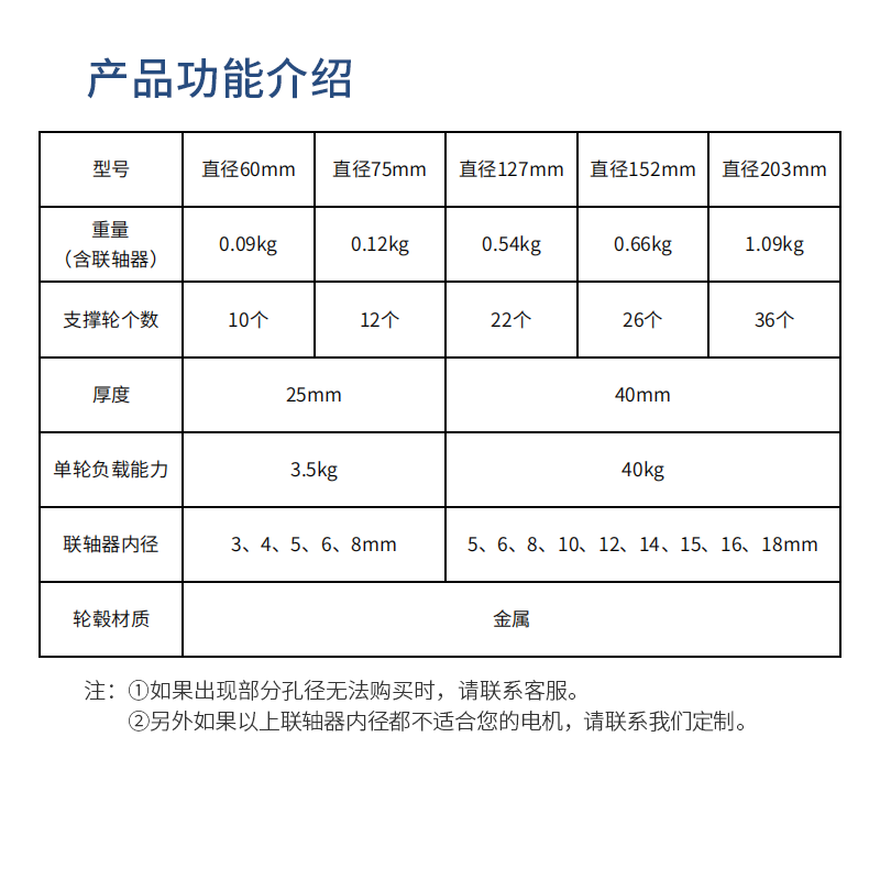 A系列127 Omni 联轴器 203mm金属全向轮ROS平台运动 含抱紧式