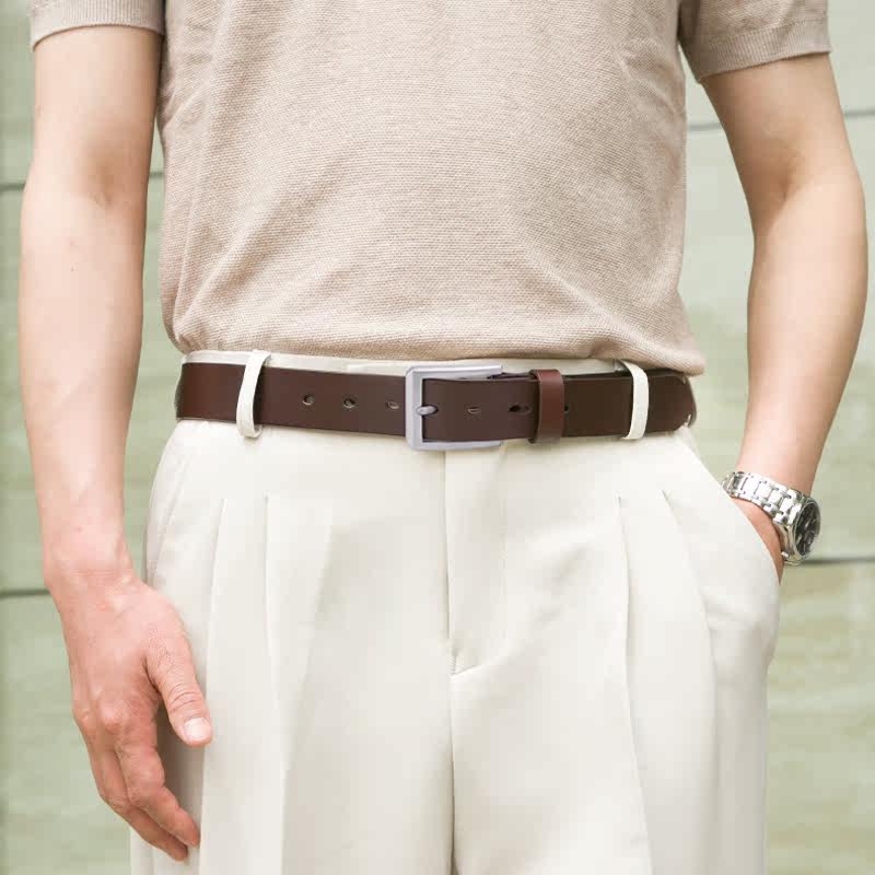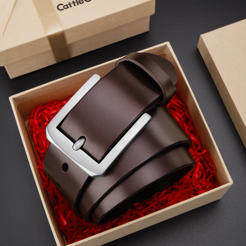 牛当家皮带男真皮纯钛中青年牛仔裤 带头层牛皮腰带男休闲针扣3187