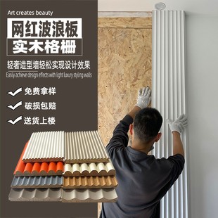 内凹波浪圆弧形半圆实木格栅板电视沙发床头造型背景墙松木装 饰板