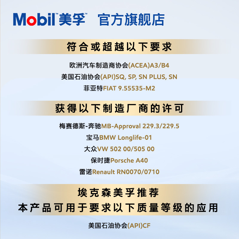 Mobil美孚1号经典 全合成机油 表现金美孚5W