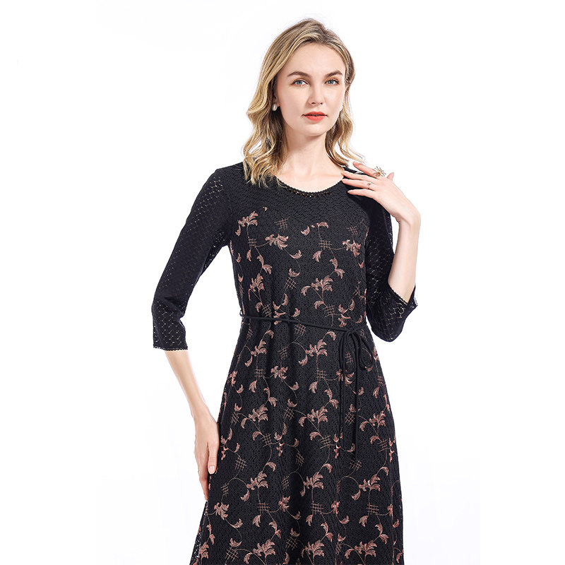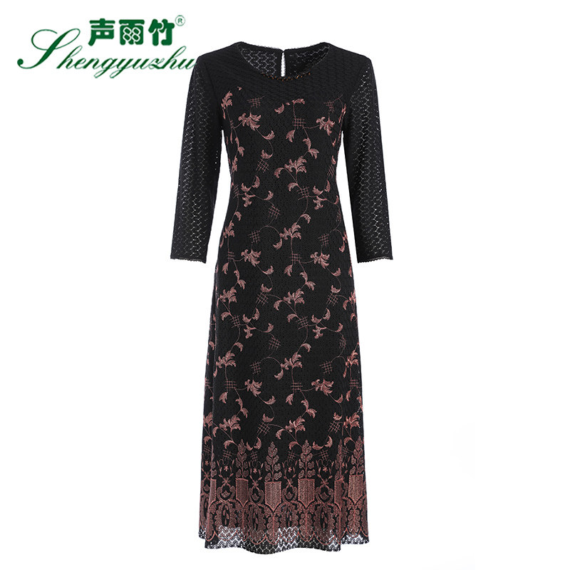 休闲甜美百搭花纹修身 连衣裙七分袖 小众 新款 声雨竹官方旗舰店秋季