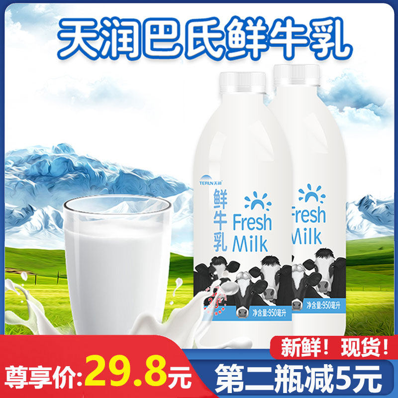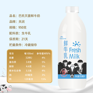 4瓶营养奶 悦鲜活原生高钙低温鲜牛奶950ml 下拉详情页领优惠