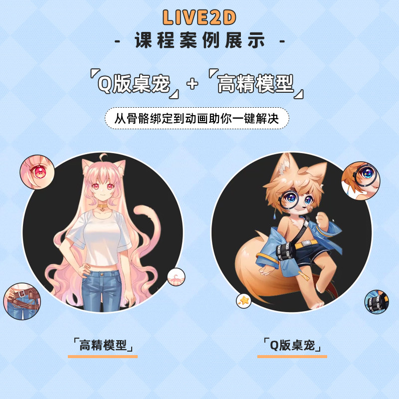 桌宠高精模型双案例绑定动画视频课程 Live2D教程虚拟主播Q版