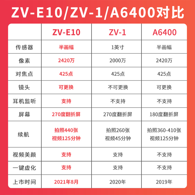 自拍美颜美妆直播vlog微单相机 E10K 索尼zve10 索尼ZV Sony