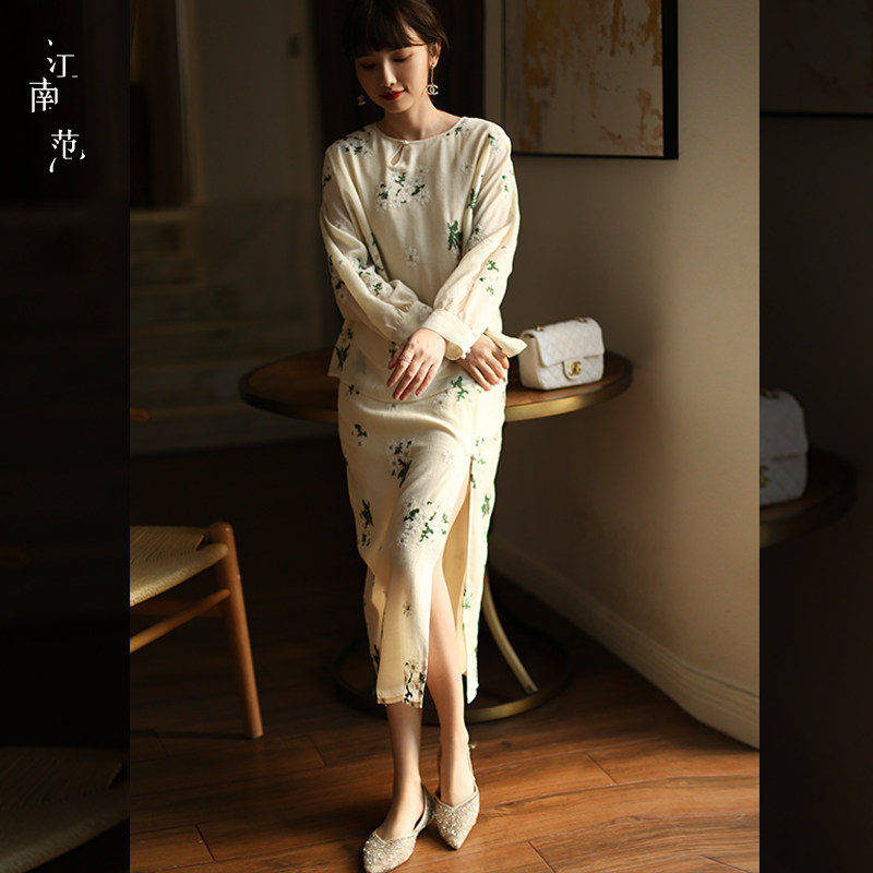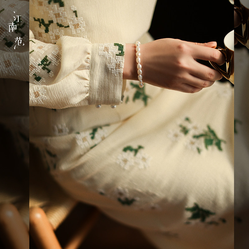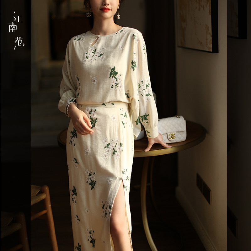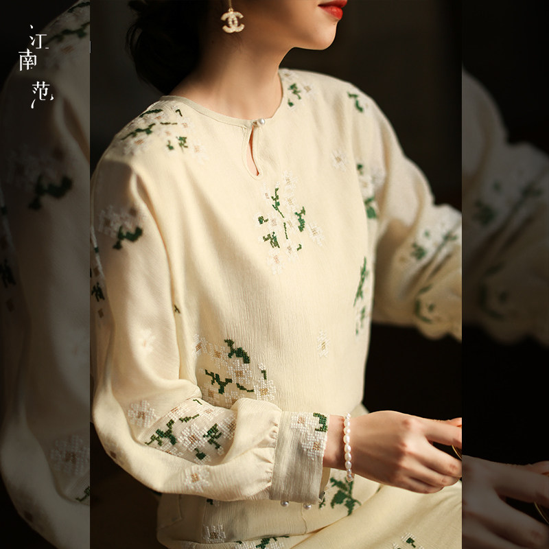 江南范新中式 女上衣水滴领宽松国风刺绣复古改良茶服上衣春精致
