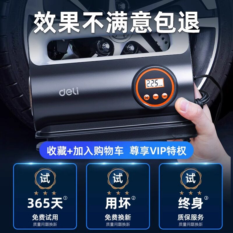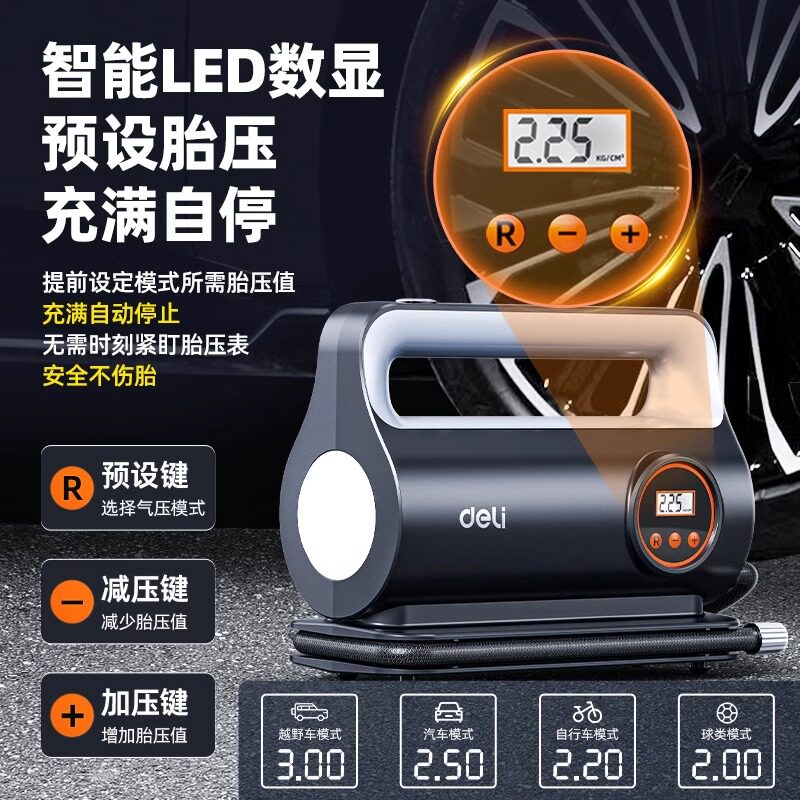 得力车载充气泵小型便携式 汽车用电动轿车轮胎12V加气高压打气筒