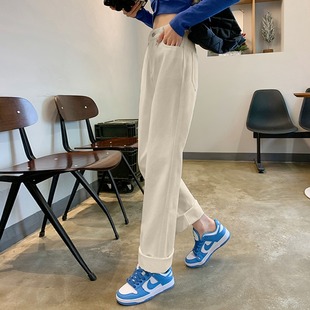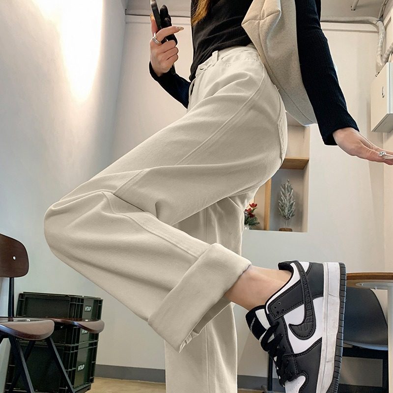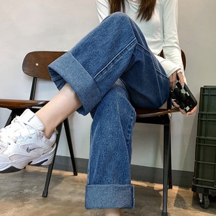 女款 加绒牛仔裤 秋冬新款 美式 子加厚 高街窄版 高腰宽松阔腿裤 直筒裤