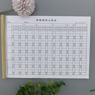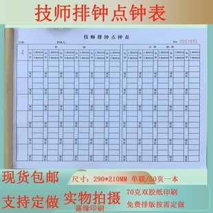 技师排钟点钟表计工单上钟登记本工作时间记录本手工单日结单定制