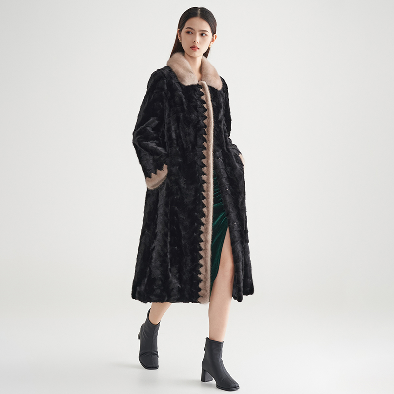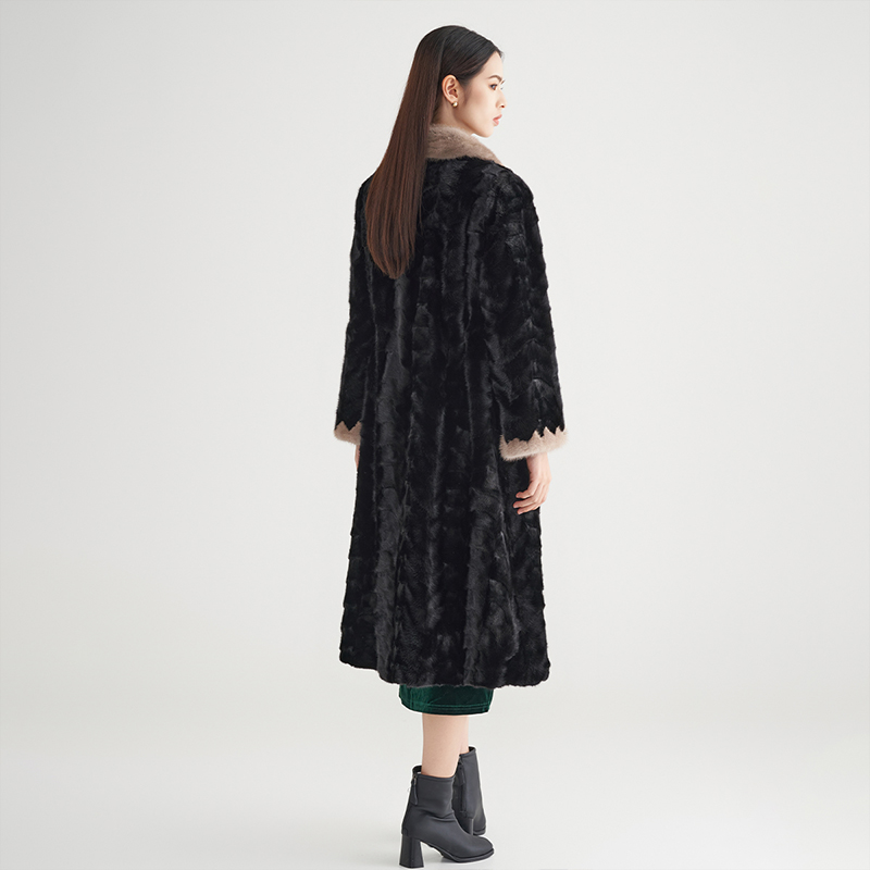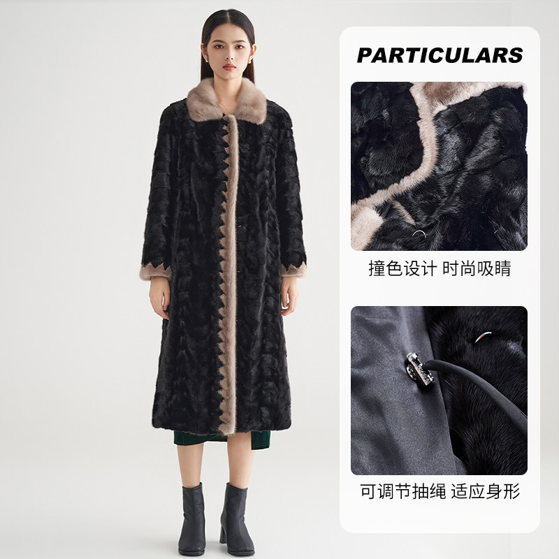 黑色翻领长款 新款 马天奴冬季 皮草大衣保暖外套 水貂毛皮