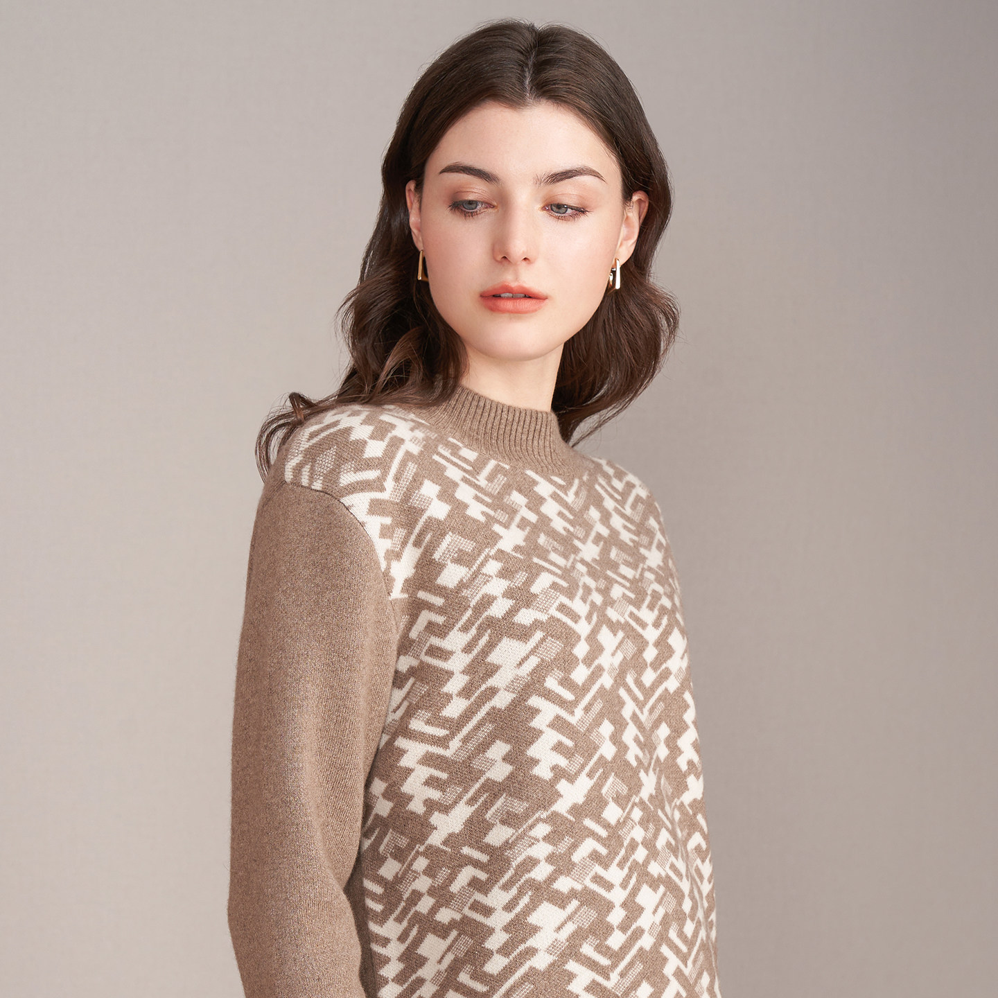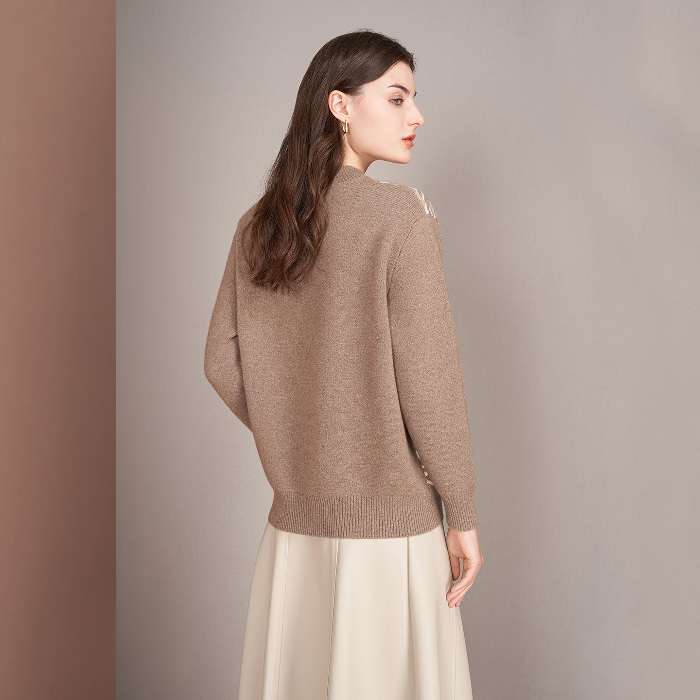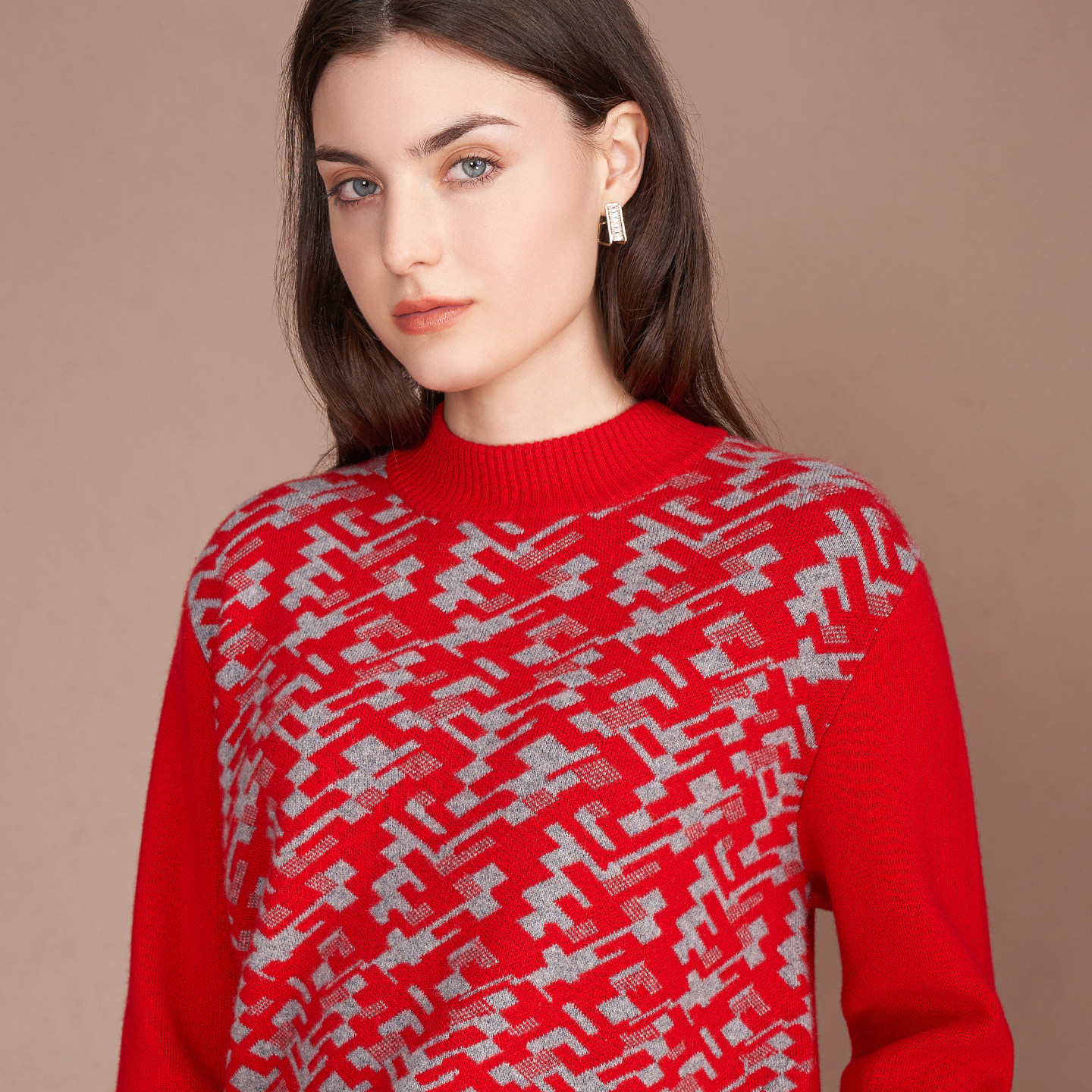 新款 简约套衫 女士过年半高领提花组织舒适修身 鹿王100%纯山羊绒衫