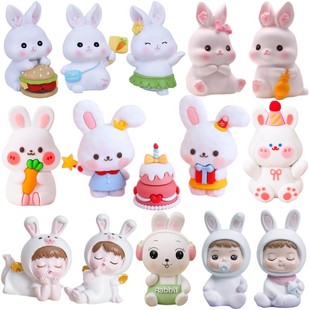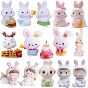 可爱兔子蛋糕装 饰树脂摆件萝卜小兔子宝宝百天周岁生日田园风插件