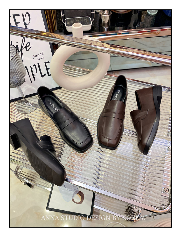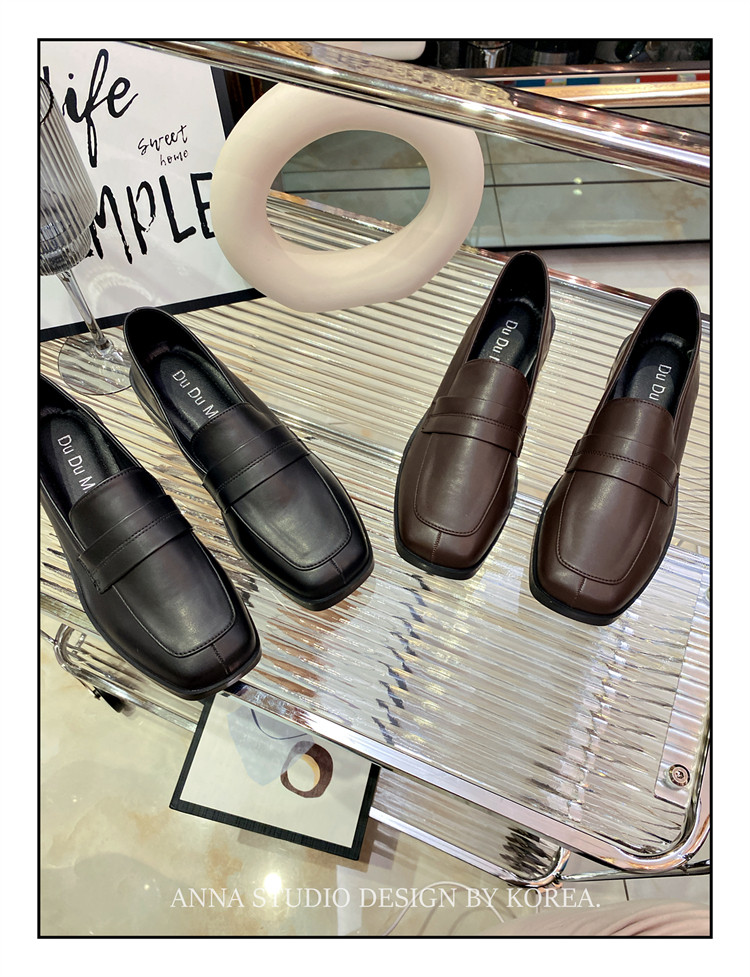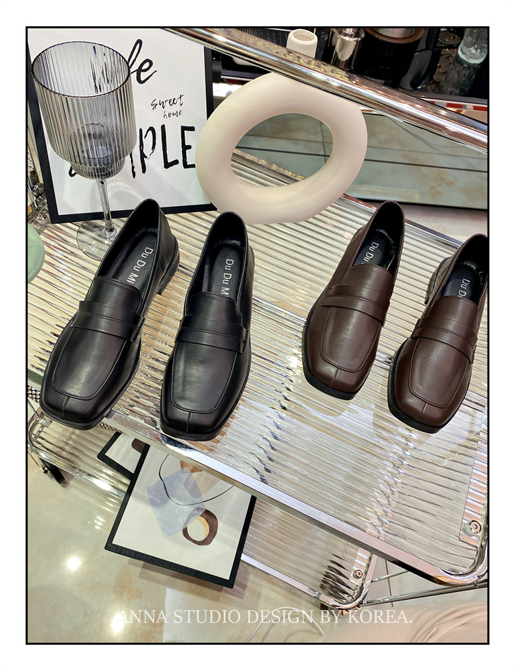 百搭软皮平底复古方头一脚蹬乐福鞋 撤柜英伦风小皮鞋 女2024年新款