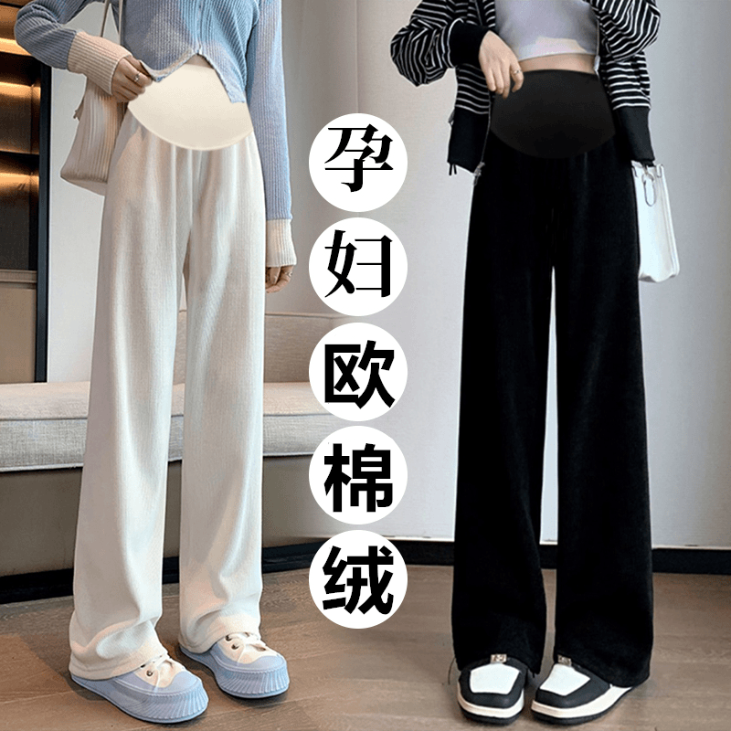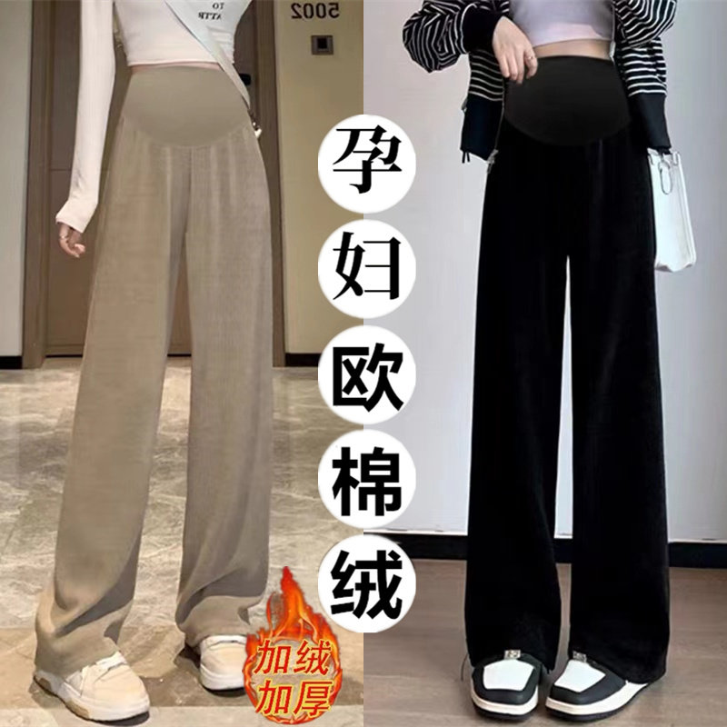 秋装 加绒加厚保暖休闲宽松长裤 春秋冬外穿欧棉绒阔腿打底裤 孕妇裤