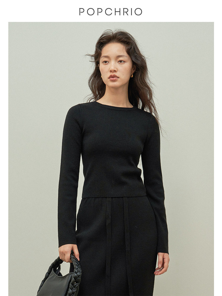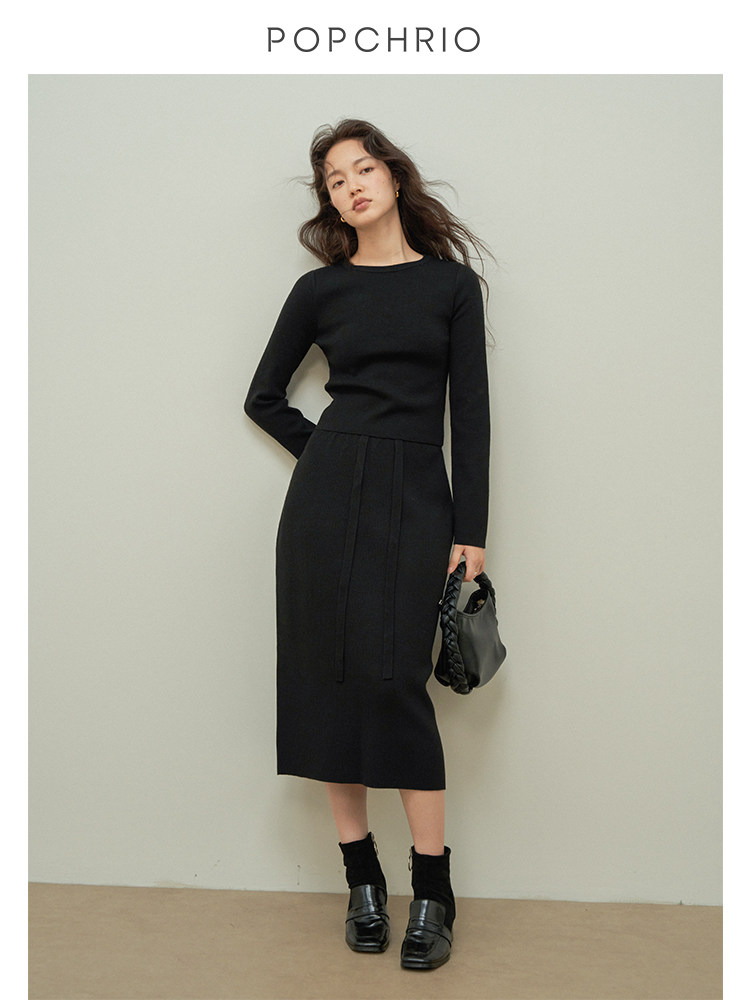 套装 羊毛茧型半身裙中长款 百搭圆领套头针织上衣女秋 到手99元