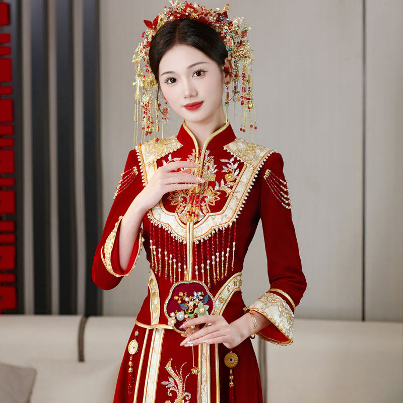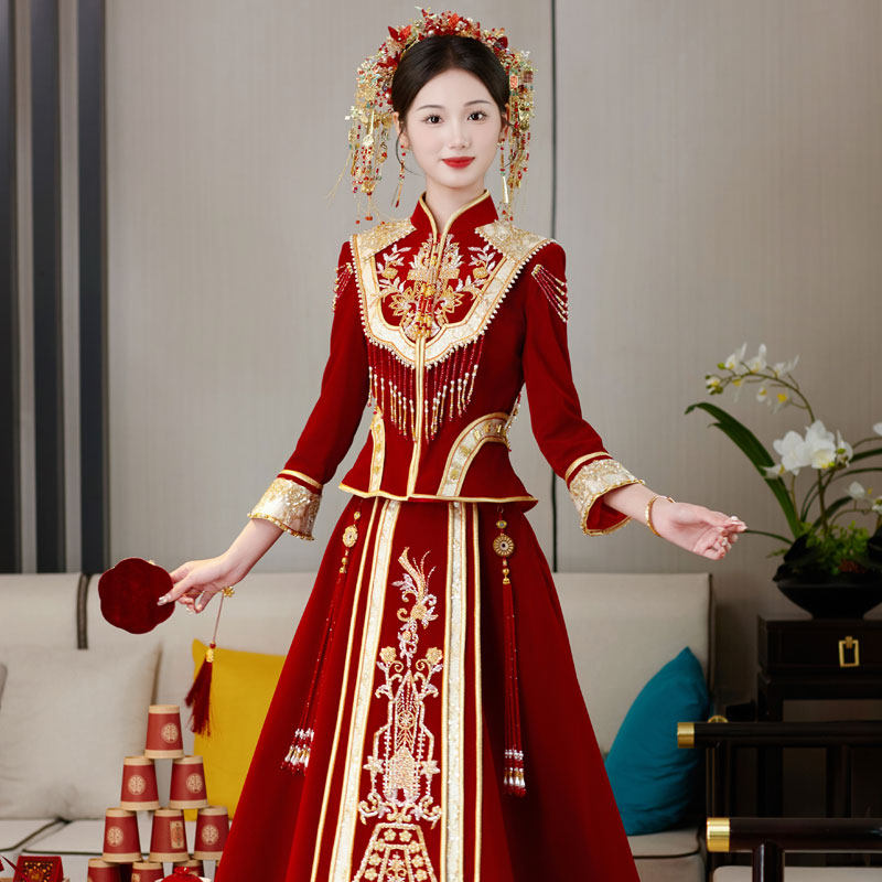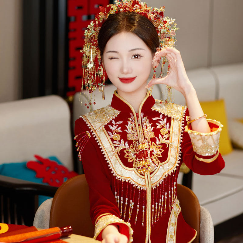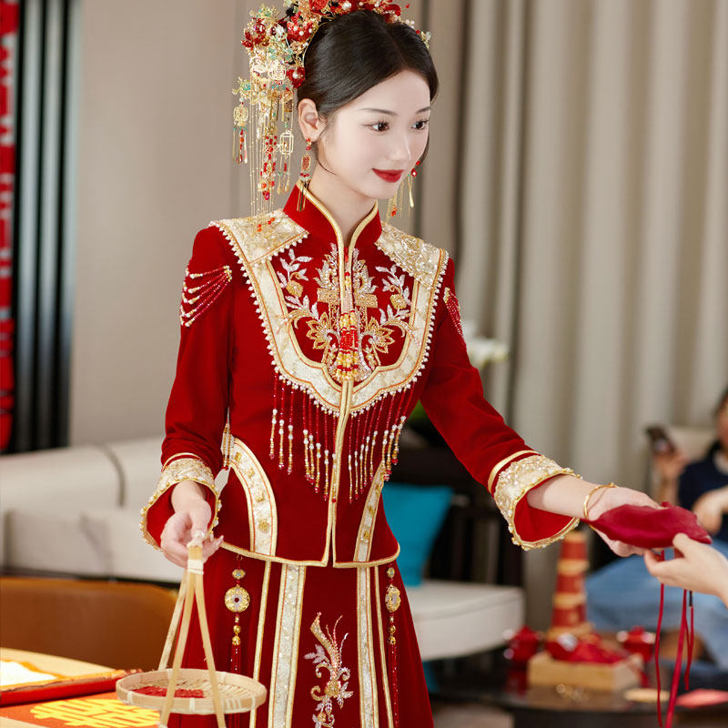 秀禾服丝绒新娘高级出阁服2024新款 婚纱礼服结婚敬酒服秀和服 中式