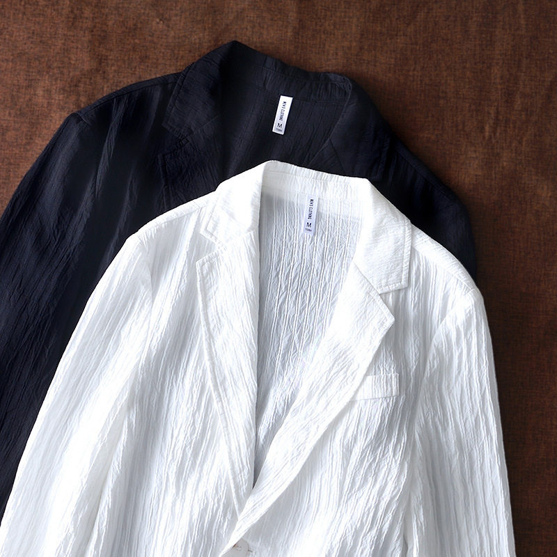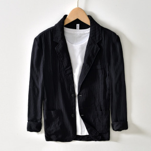 外套 宽松纯色便西服上衣男式 小清新潮流日系暗纹条纹休闲时尚 西装