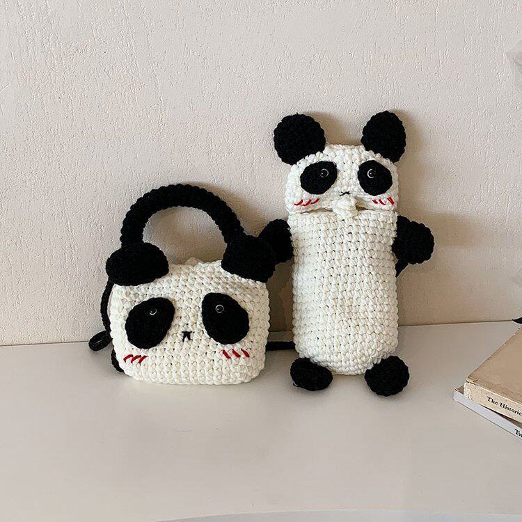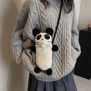 手工针织包2023新款 成品可爱熊猫女包小众设计钩织亲子毛线斜挎包