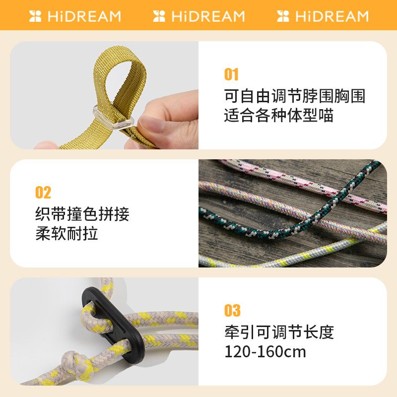 月饼喵│HiDREAM自由探索猫胸背带套装 工字形防挣脱猫咪牵引绳