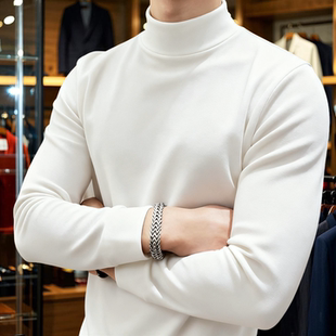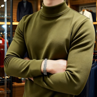 内搭秋冬德绒咖啡色保暖打底衫 半高领修身 长袖 加厚双面绒T恤男士