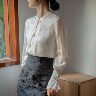 女民中国风设计感汉元 盘扣衬衫 素提花上衣 醋酸新中式 2026春秋新款