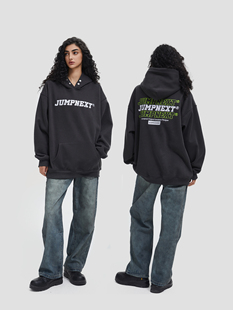 连帽加绒卫衣男女纯色宽松休闲拼接 12盎司5763日系重磅秋冬季