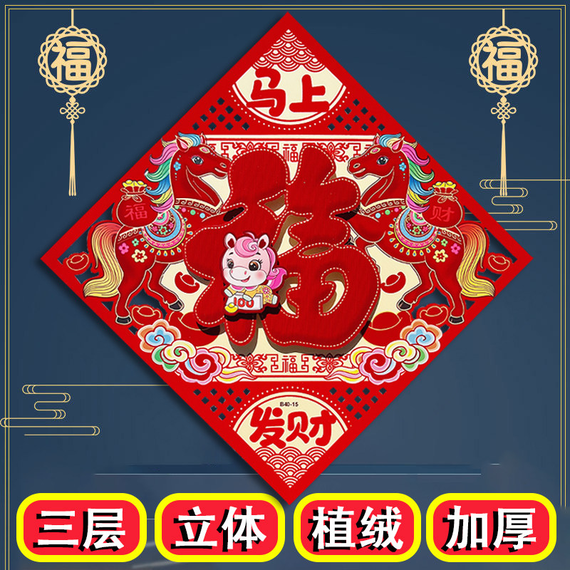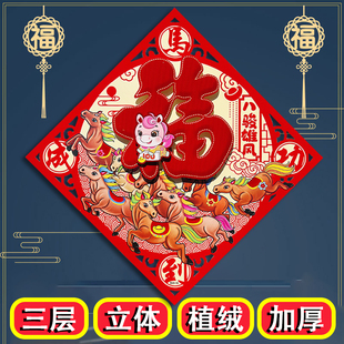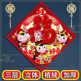 植绒面窗贴特大号福字门贴窗花剪纸静电贴纸玻璃贴过新年乔迁装 饰