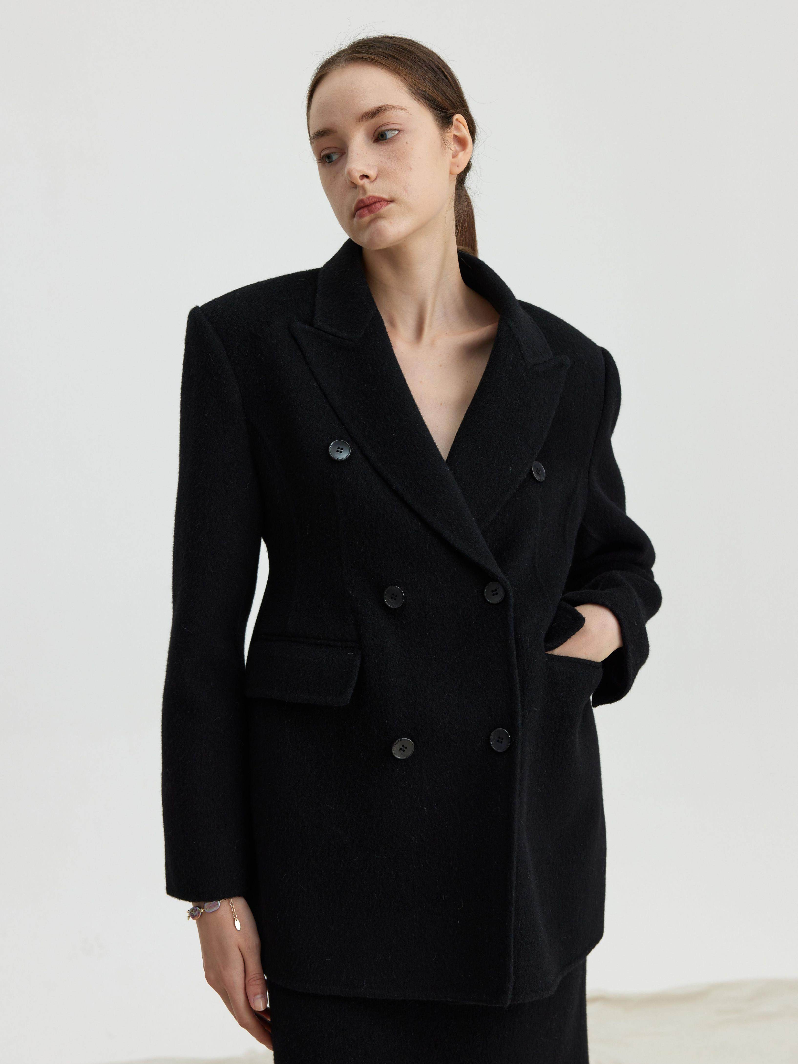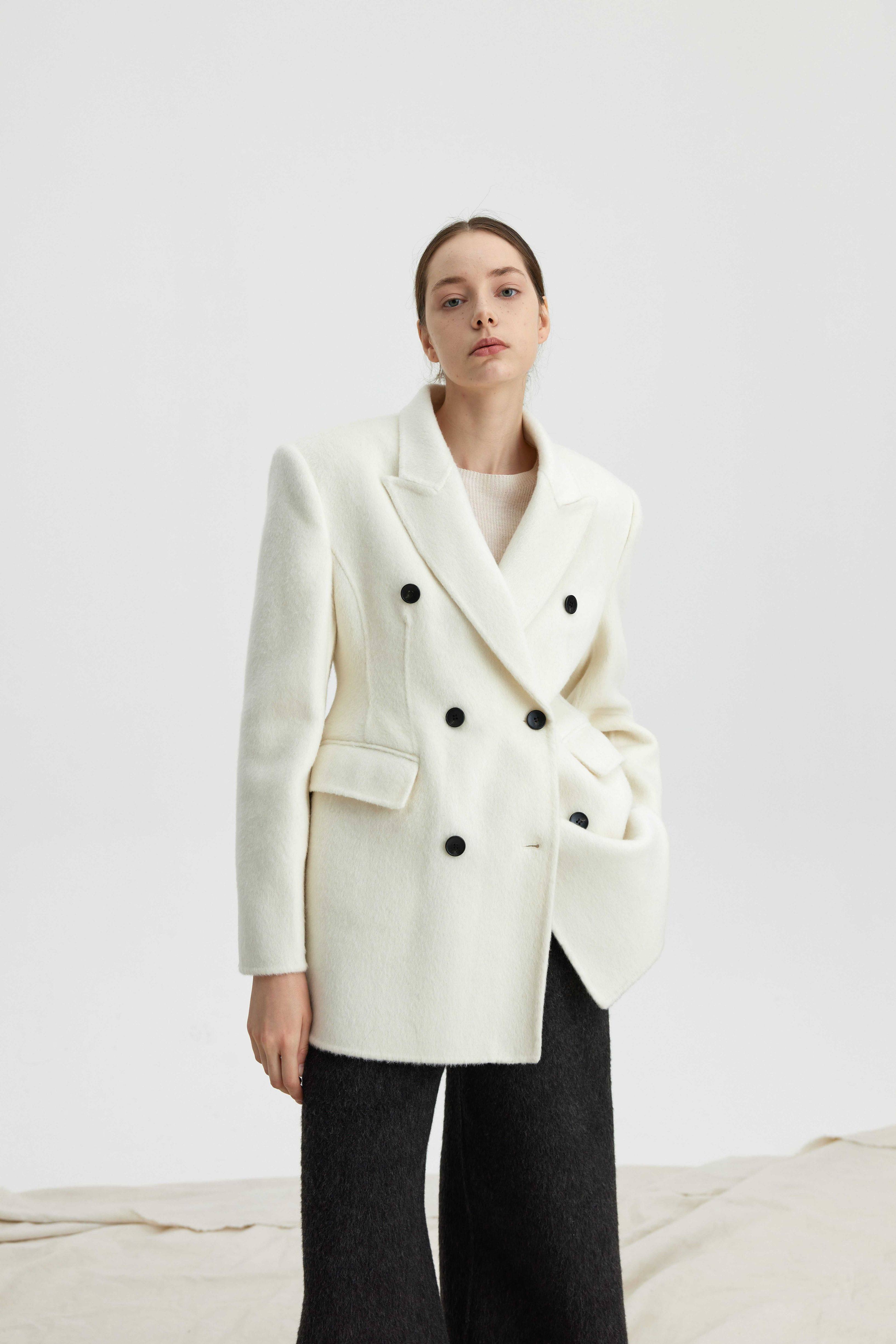 2026极简慵懒气质沙漏腰羊毛外套优雅显瘦兔毛双面呢大衣小个子新