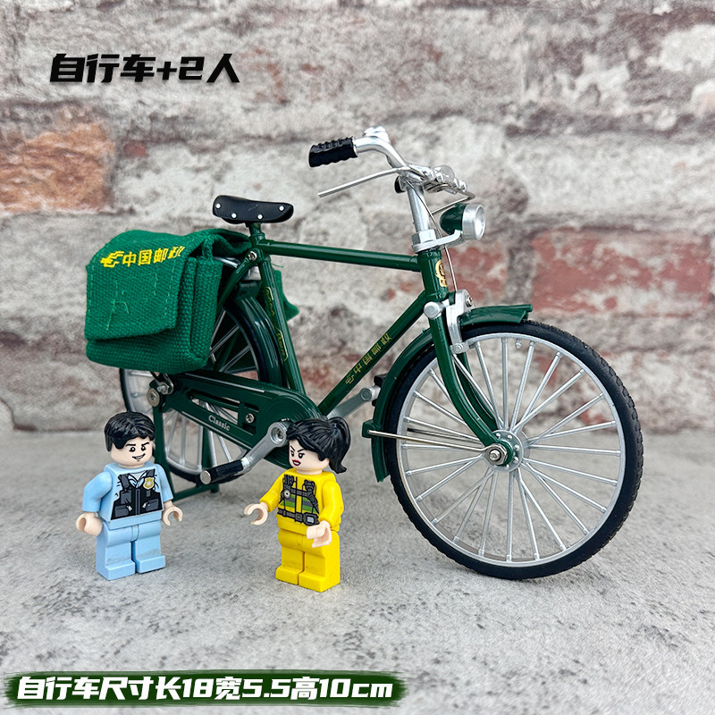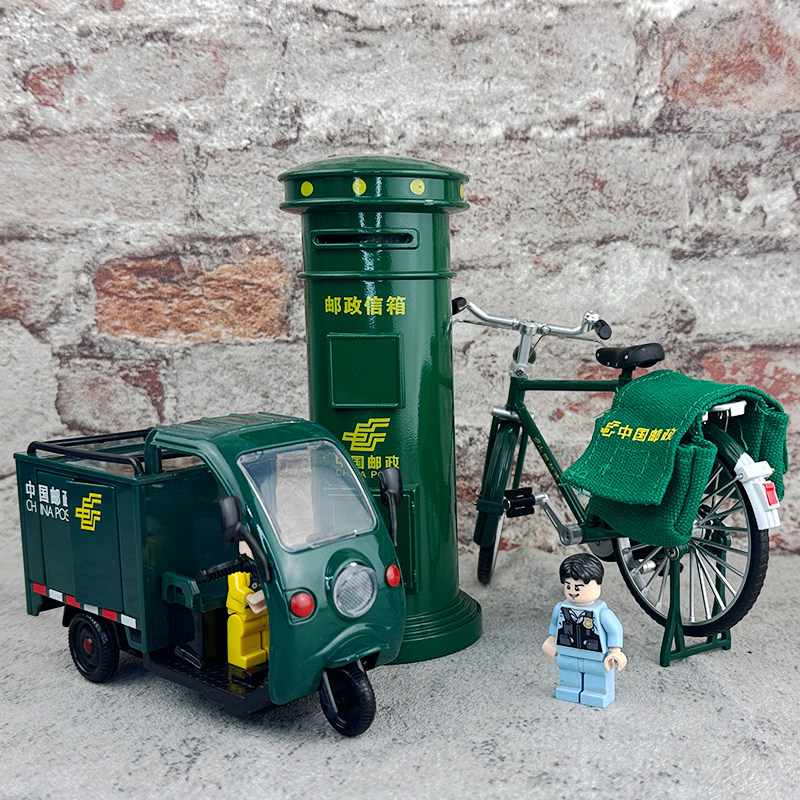 合金邮政自行车模型二八大杠邮筒信箱快递三轮车储蓄罐玩具汽车