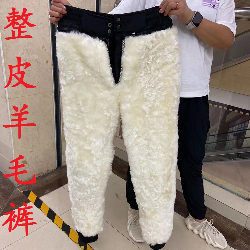高腰加厚皮裤 子男女士羊毛加绒保暖棉裤 中老年羊皮裤 羊皮毛一体裤