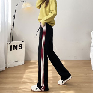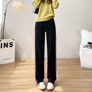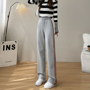 休闲 女秋冬加厚高腰垂感大码 灰色窄版 直筒棉质加绒加长运动阔腿裤
