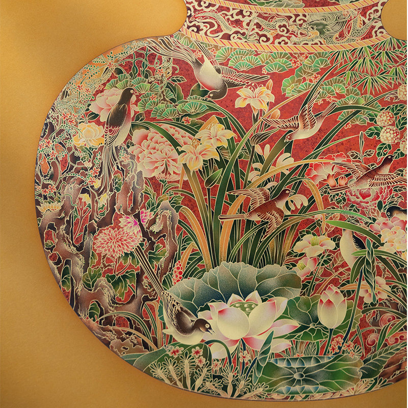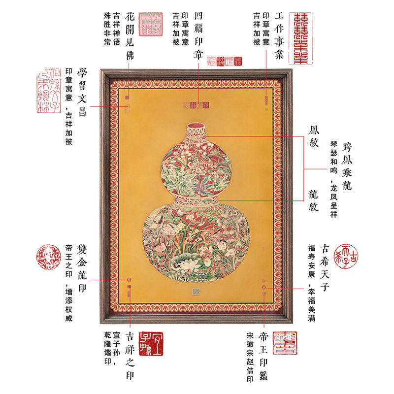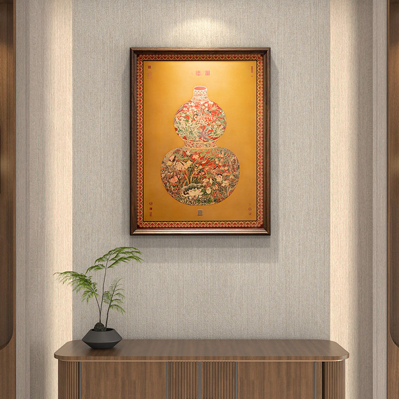 葫芦挂画入户玄关画正对门新中式 饰画客厅背景墙福禄画 铜画高级装